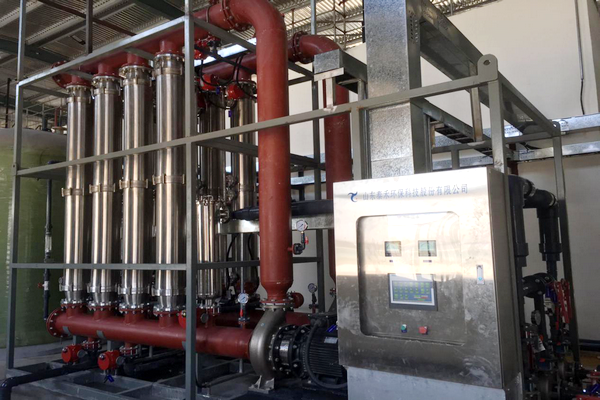山東泰禾環(huán)保科技股份有限公司循環(huán)水廢水回用處理系統(tǒng)包括一體化高速反應(yīng)池,壓濾機(jī)去硬度和固體雜質(zhì),然后依次連接的自清洗過濾器、陶瓷膜超濾組件和RO反滲透膜組件,該循環(huán)冷卻水廢水回用系統(tǒng)的脫鹽率大大提高,作為循環(huán)冷卻水系統(tǒng)補(bǔ)給水循環(huán)使用,有效優(yōu)化循環(huán)冷卻水水質(zhì),降低循環(huán)冷卻水的鹽分濃度。